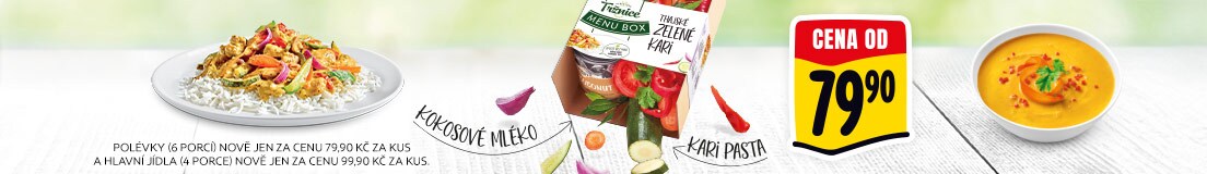 Menu box je ideální řešení, když nemáte chuť složitě přemýšlet, co uvařit. V Albertu najdete šikovně připravené menu boxy – každý obsahuje recept a základní suroviny, ke kterým stačí přidat pár potravin ze spíže či ledničky, a vznikne hotové jídlo bez zbytečného stresu. Ať už vás láká mexické chilli con carne, japonské teriyaki nebo různé polévky, vždy si snadno připravíte chutné jídlo v pohodlí svého domova.